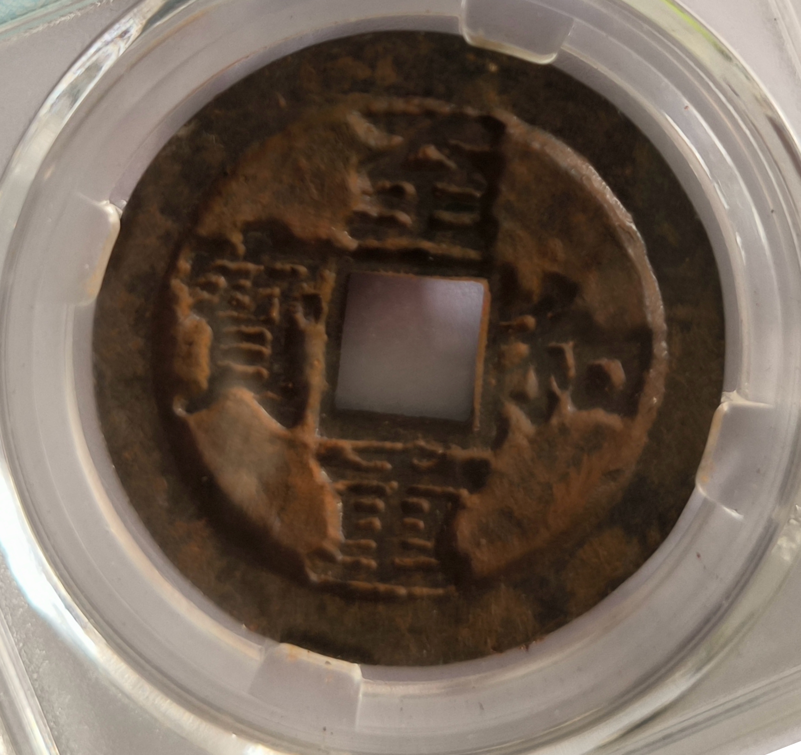 北宋,直径3.06厘米,重7.38克 庆历重宝钱铸于宋仁宗庆历年间(1041—1048年),有青铜、铁两种材质。庆历重宝铜钱一般直径2.84~3.21厘米,重5.7~9.25克。该钱初铸时为折十钱,庆历末年因盗铸众多改…