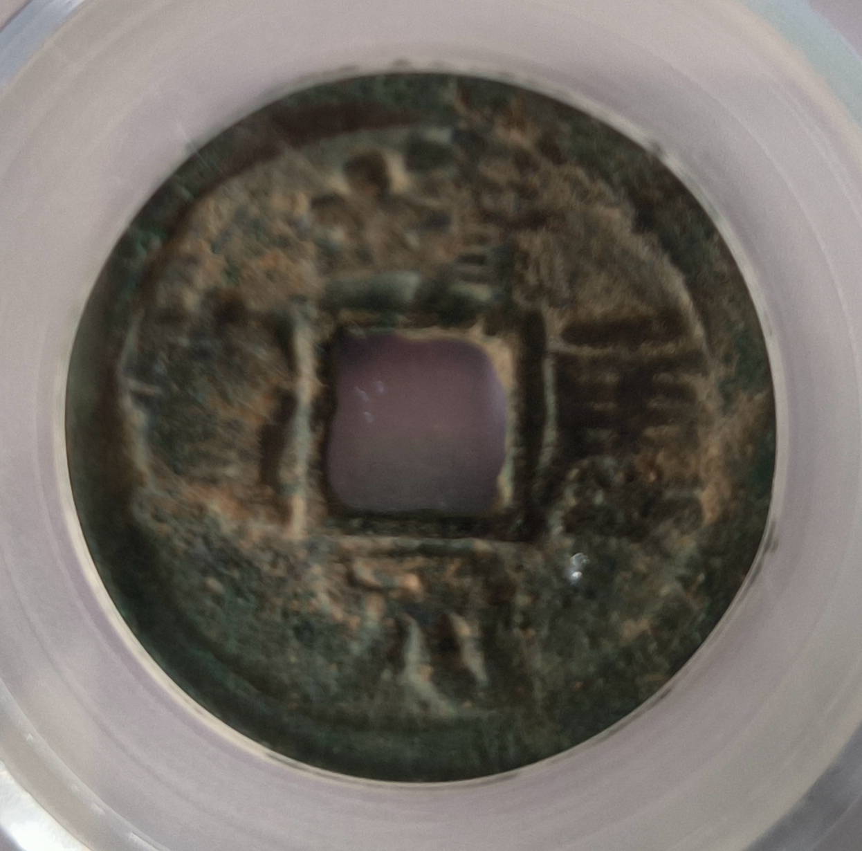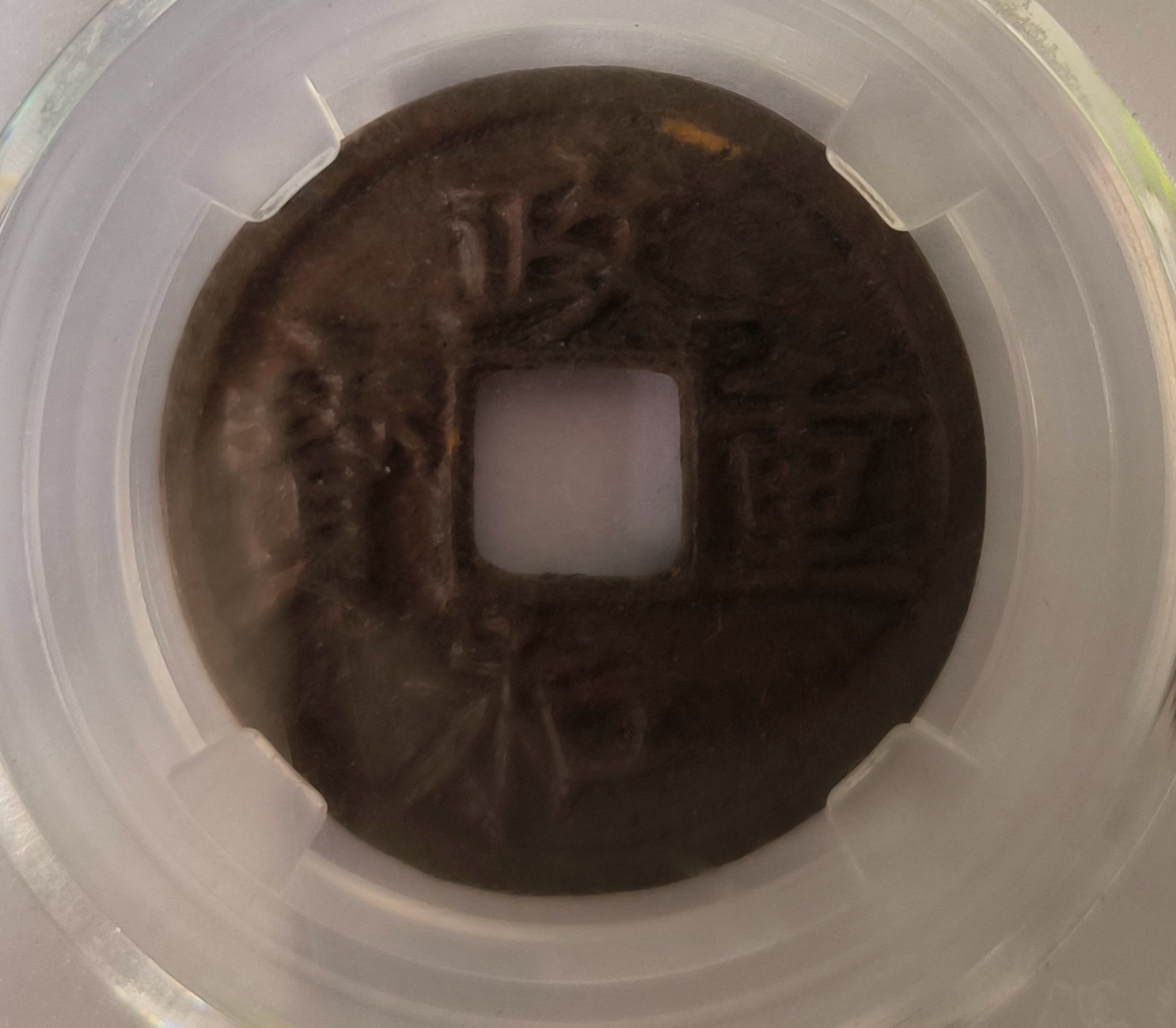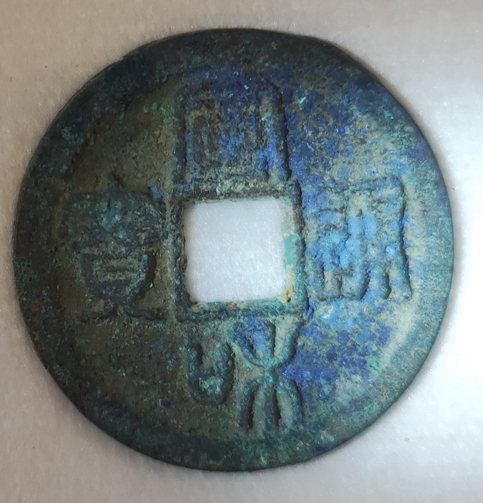 北宋,直径2.41厘米,重4.01克。 政和通宝钱铸于宋徽宗赵佶政和年间(1111年—1118年),有青铜、铁两种材质。 政和通宝铜钱有小平钱、折二钱,一般直径、重量为:小平钱2.35~2.68厘米,2.7~4.8克;…