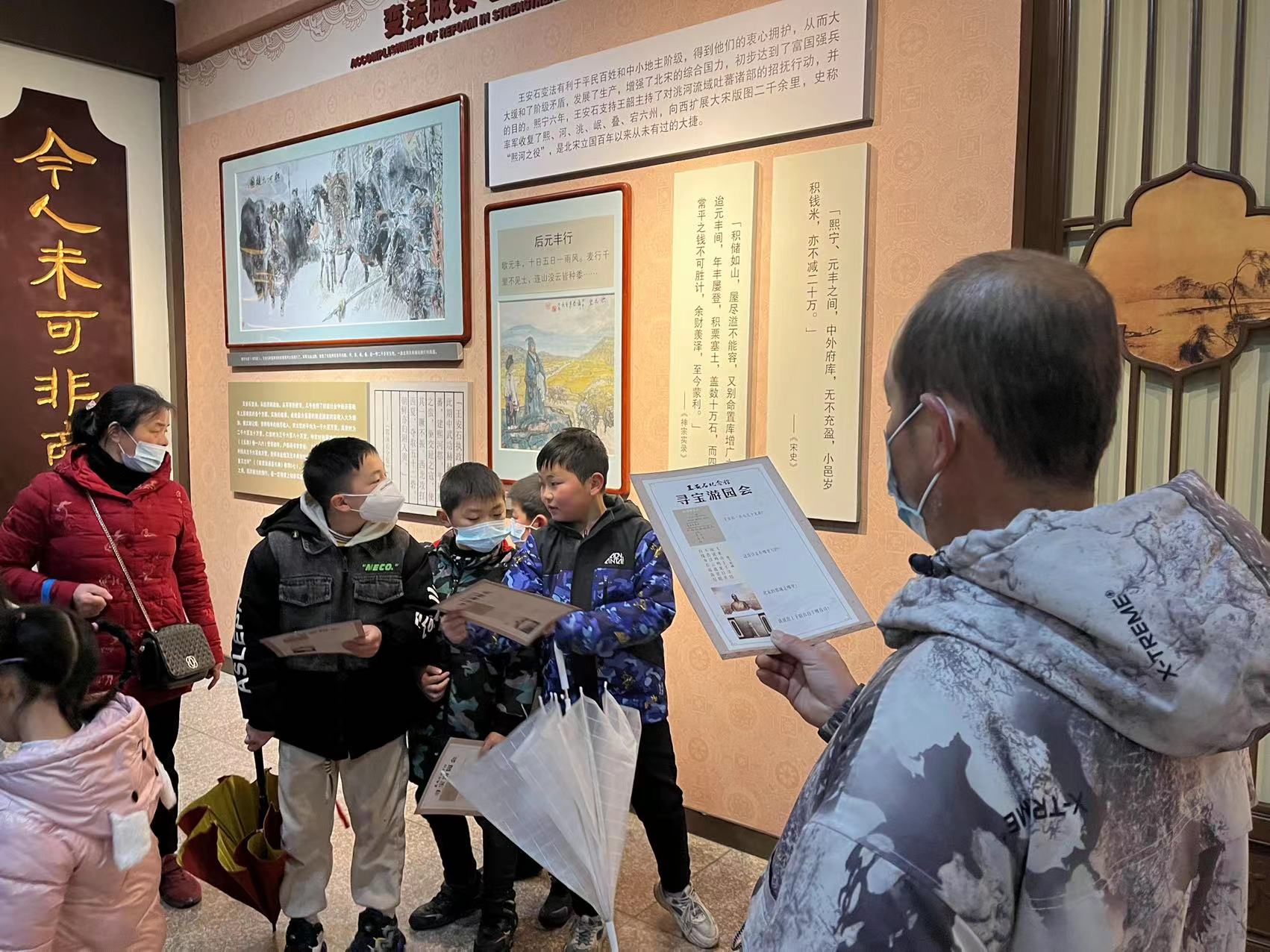 活动现场,我馆工作人员给每位游客分发“寻宝游园会”卡片,游客朋友需要在限定时间内根据卡片提示,在王安石纪念馆内寻找相对应的答案。游客们或结伴解题,或独自斟酌,还有认真者拿出小本,边思考边记下来,其中一位五年级的小朋友说:“我觉得寻宝游园会是很有趣的活动。有的题目简单,有的也很难,得好好动脑筋”。一眼望去,熙丰楼大厅里意趣盎然,大家参与其中,不亦乐乎。