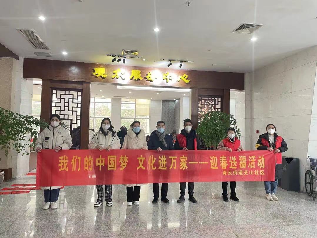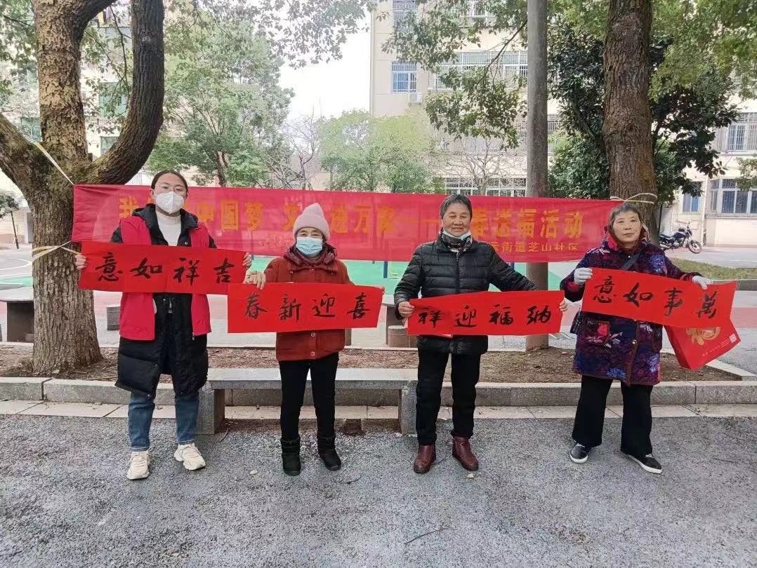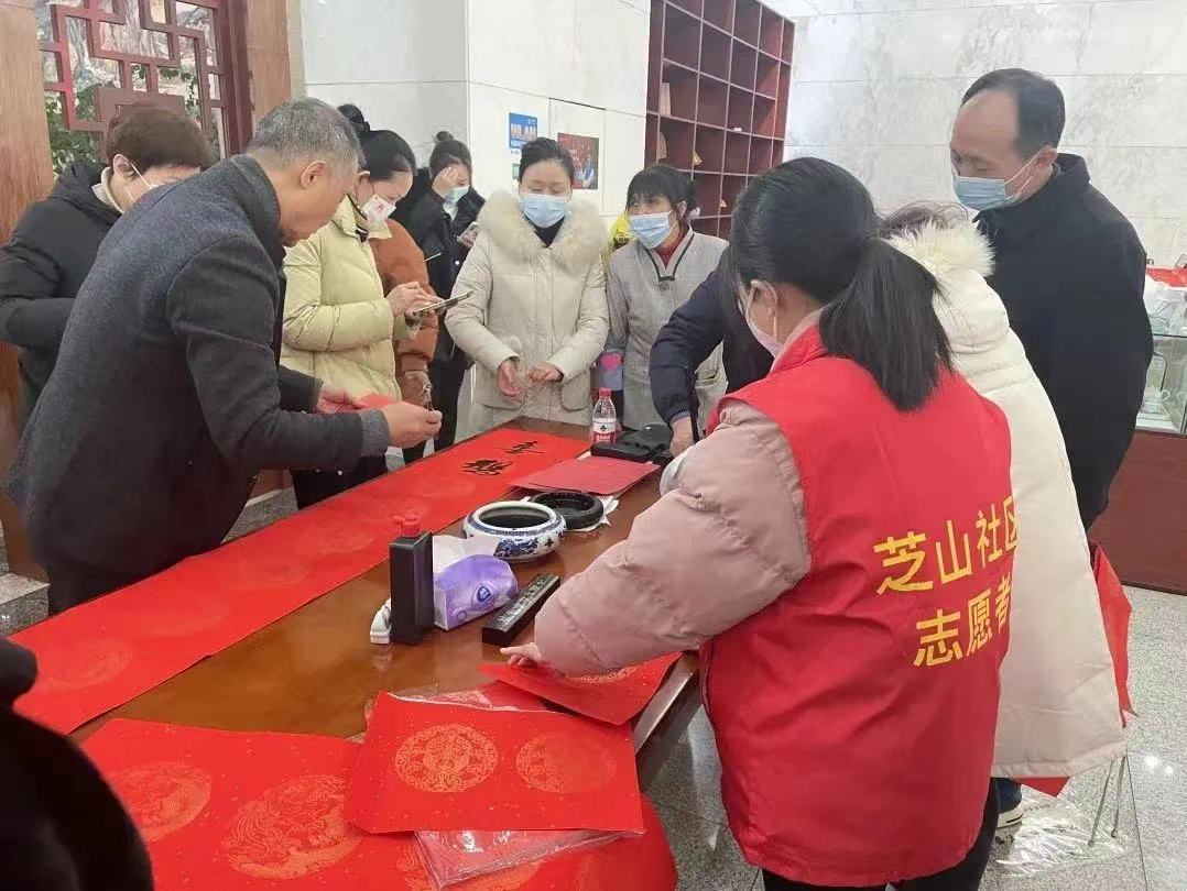 当天下午,我馆工作人员走进芝山社区,开展免费送春联公益文化活动。