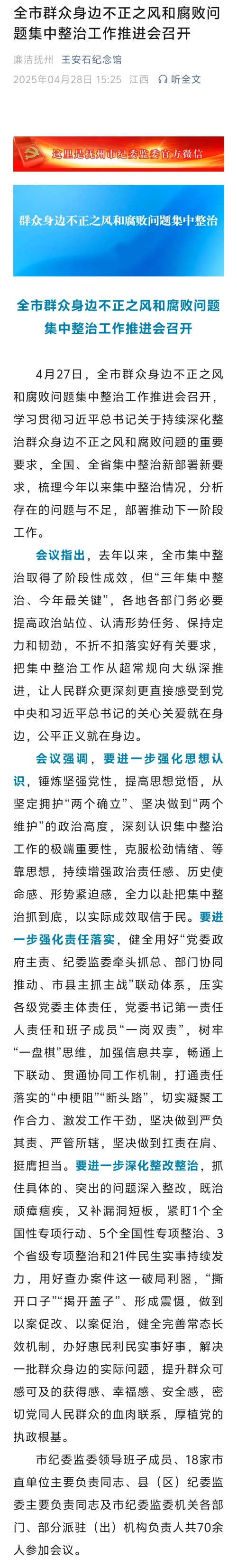 全市群众身边不正之风和腐败问题集中整治工作推进会召开