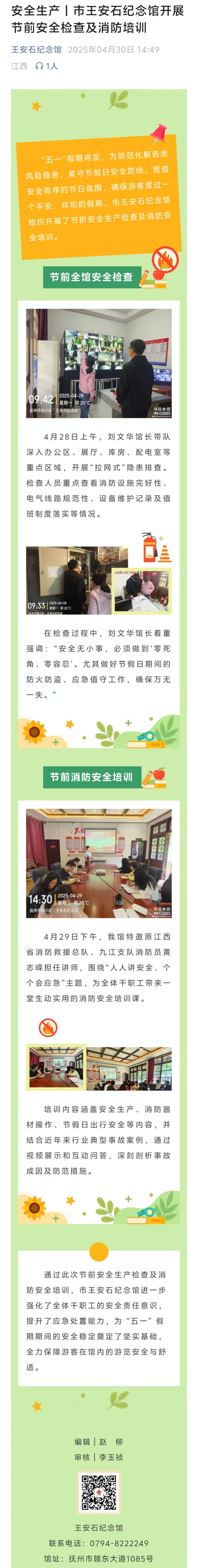 安全生产丨市王安石纪念馆开展节前安全检查及消防培训