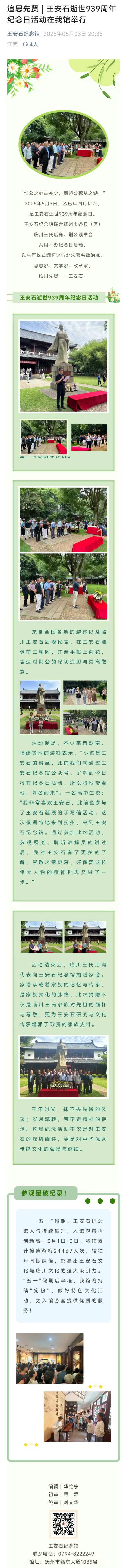 追思先贤 | 王安石逝世939周年纪念日活动在我馆举行