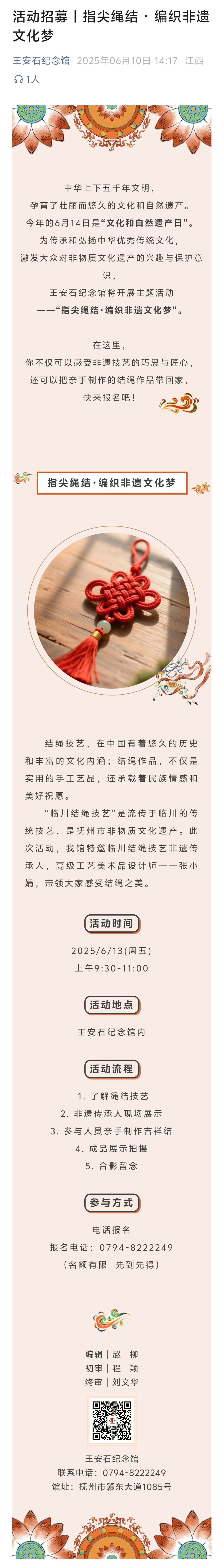 活动招募丨指尖绳结 · 编织非遗文化梦