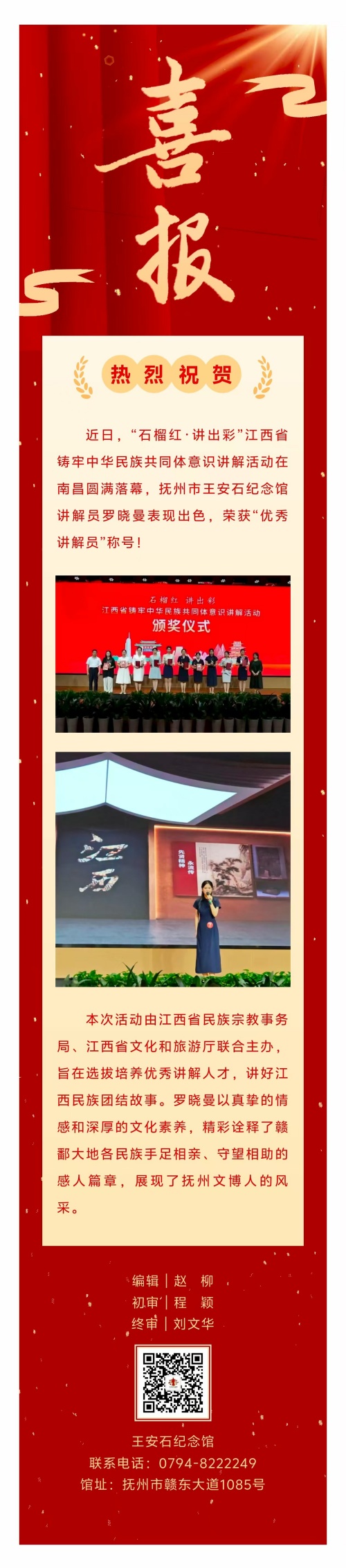 喜报 | 王安石纪念馆罗晓曼荣获“石榴红•讲出彩”江西省优秀讲解员!