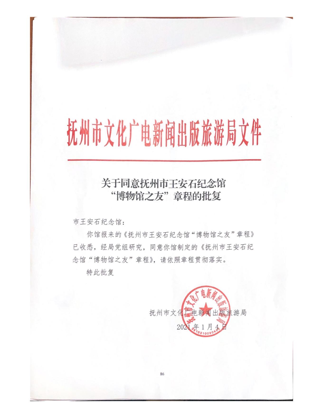 第一章 总则 第一条 名称:抚州市王安石纪念馆。 第二条 地址:江西省抚州市赣东大道1085号。 第三条 抚州市王安石纪念馆的法定代表人为纪念馆馆长。 第四条 抚州市王安石纪念馆是由地方财政全额拨款的公益文化事业单位,属…
