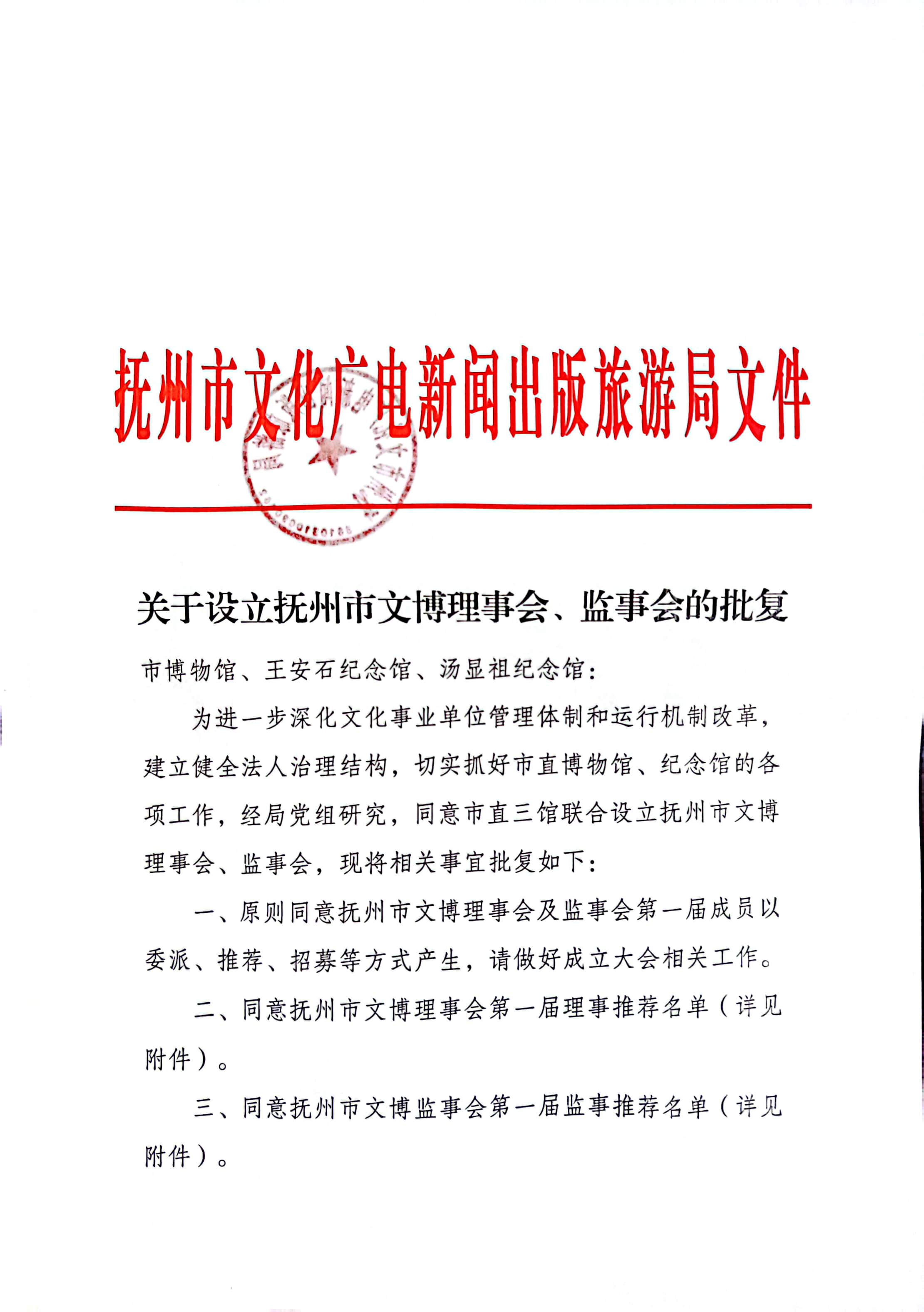 为进一步深化文化事业单位管理体制和运行机制改革,建立健全法人治理结构,切实抓好市直博物馆、纪念馆的各项工作,经研究决定,设立抚州市文博理事会。结合实际,制定理事会章程如下: 第一章 理事会的构成及职责 第一条 文博…