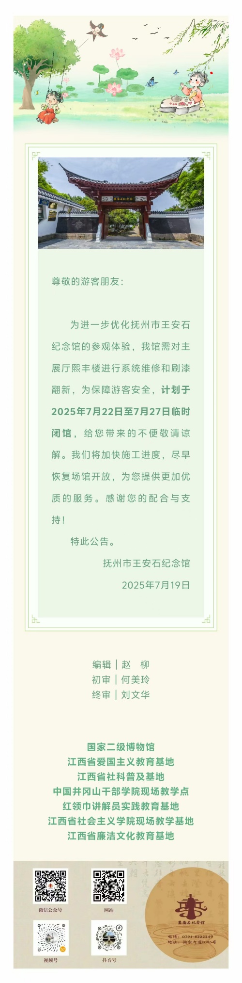公告 | 抚州市王安石纪念馆临时闭馆公告